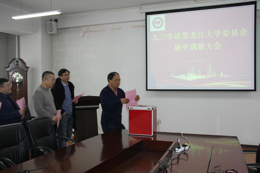 12月30日上午,九三学社黑龙江大学委员会届中调整大会在汇文楼847室举行。党委常委、统战部长焦方义,民盟黑龙江大学委员会主委祖雪晴,民进黑龙江大学支部主委郭孟秀,民革黑龙江大学支部支委王晓飞列席会议,九三学社黑龙江大学委员会社员代表参加会议,会议由九三学社社员高芃主持。
