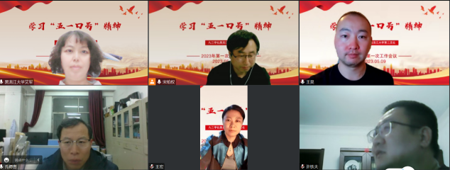 九三黑龙江大学委员会参政议政委员兼第一支社主委崔惠颖、委员会妇女委员兼第二支社主委于桂玲、委员会社会服务委员兼第三支社主委宋柏权,分别向各支设社员教师介绍了学校关于开展纪念中共中央发布“五一口号”75周年工作方案,并带领社员老师认真学习了纪念中共中央发布“五一口号”75周年座谈会精神,重温了“五一口号”发布的背景、历史及现实意义。