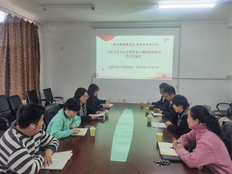 民盟黑大委员会、民进黑大支部骨干成员纷纷交流发言,大家纷纷表示,将认真贯彻习近平总书记重要讲话精神,完成好黑龙江大学“龙江人民子弟校”的育人使命,坚持教育发展、科技创新、人才培养一体推进,用实际行动贯彻落实习近平总书记的重要指示,为龙江全面振兴全方位振兴贡献黑大力量。