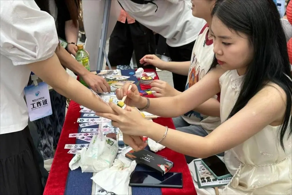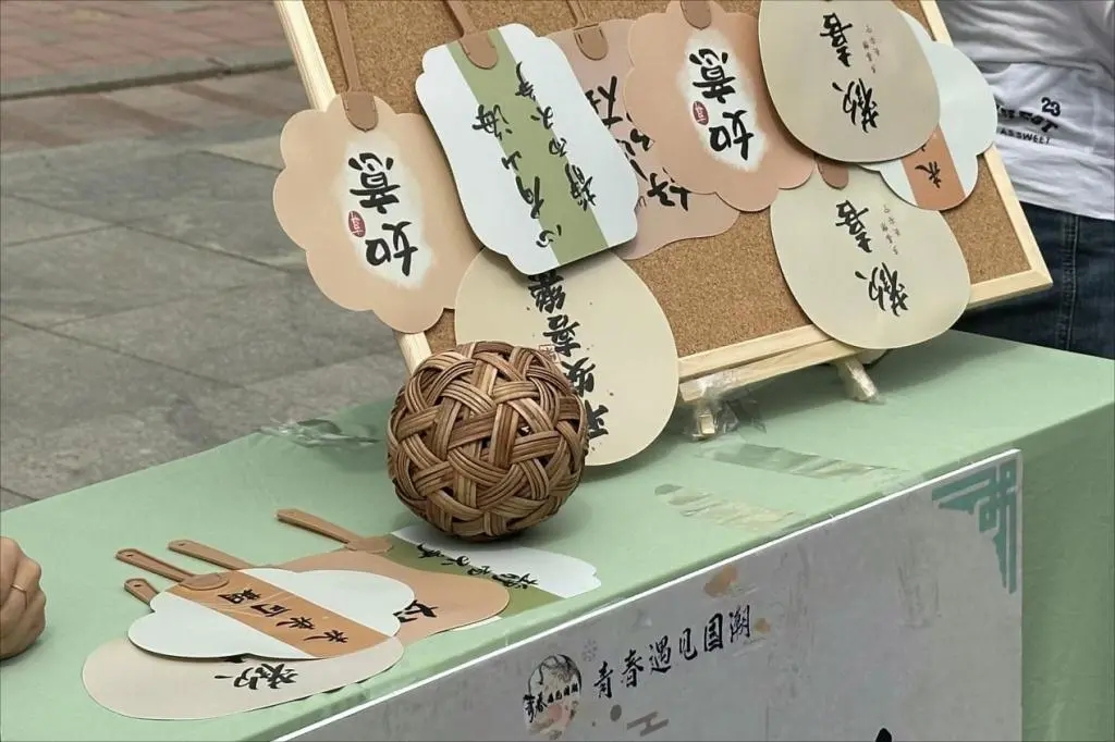 此外,游园“琴棋书画”四个展位分别展示了青春遇见国潮系列活动前期收集的作品和活动成果。并设置集章体验非遗漆扇制作区,让同学们通过亲手制作漆扇,深入体会中国传统工艺之美。